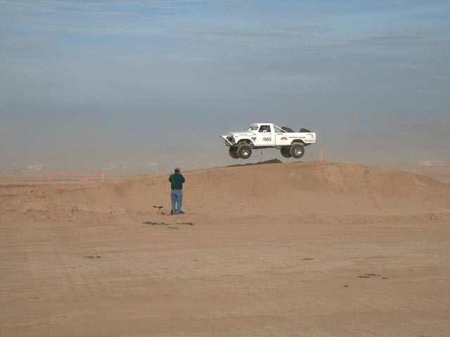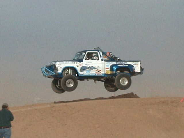 03/24/99 Wow haven't updated this in awhile. I have added new photos though. There are now new years photos from Glamis, a few shots from the Parker off-road 400 and the Dodge City Rally in Ocotillo Wells Ca. The A/C is still leaking and we still can't find where. Another rear tire has had a nail removed, plus they were all balanced and rotated. The rear brakes have finally been replaced (including all the springs and hardware). I put on flowtech headers and had a local shop install dual flowmasters (WOW What a difference) and I'll have a whole page about that soon. And now I've managed to break the driveline off. |